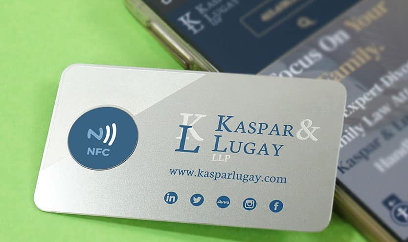 Our Metal NFC Business Cards make it possible to simply tap your card on a smart phone to share information. And, because they’re made of our thick .8mm stainless steel, they’re durable, luxurious, and functional!